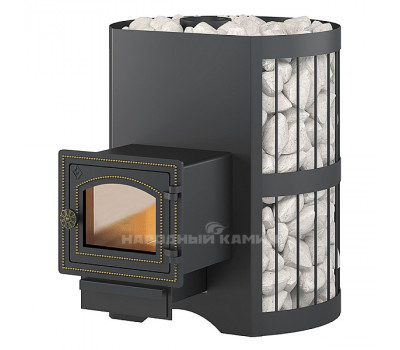 Выносной топливный канал позволяет топить печь из смежного помещения: предбанника/помывочного отделения и т.д. Через стеклянную дверцу можно наблюдать за огнем.