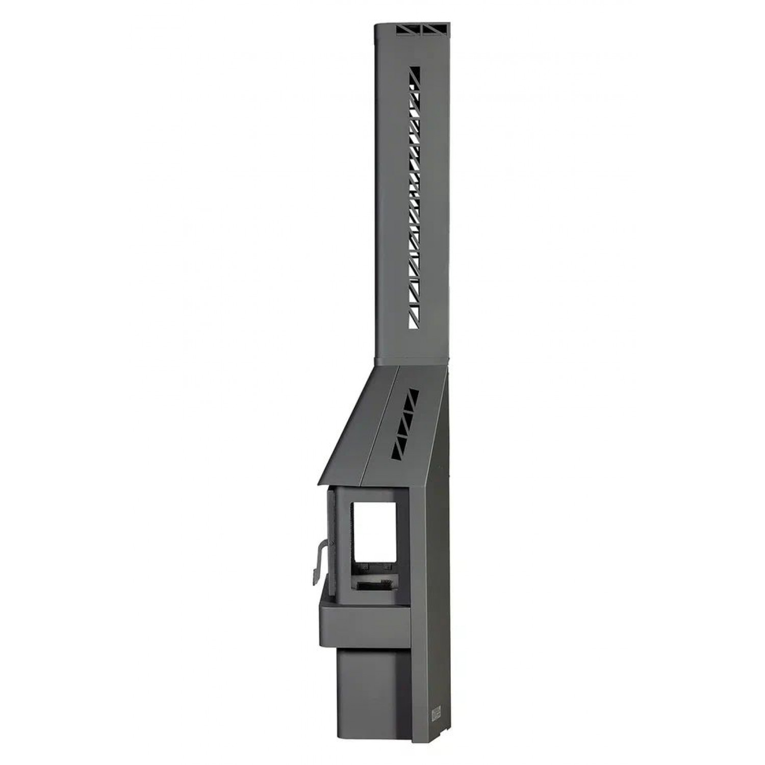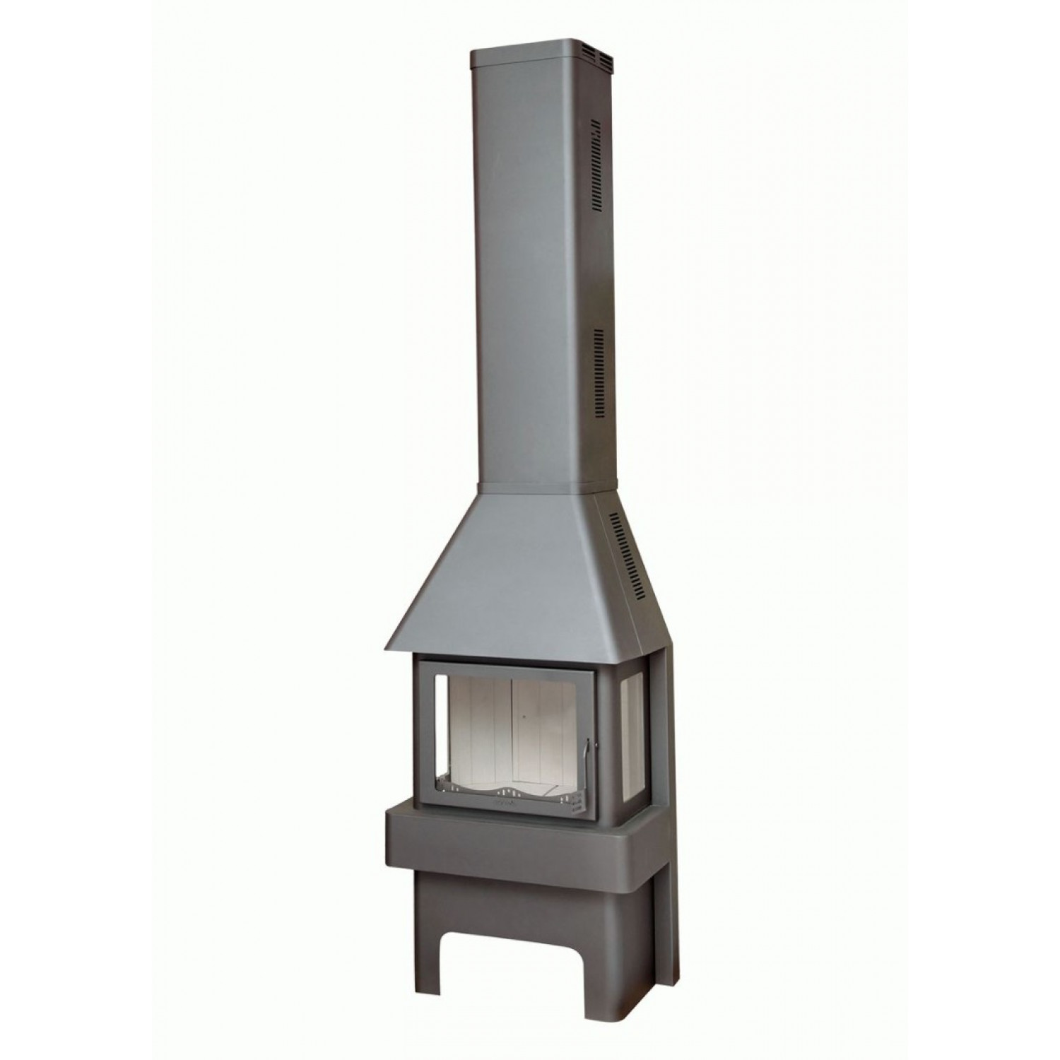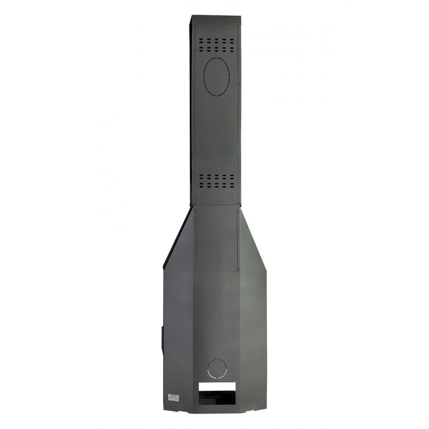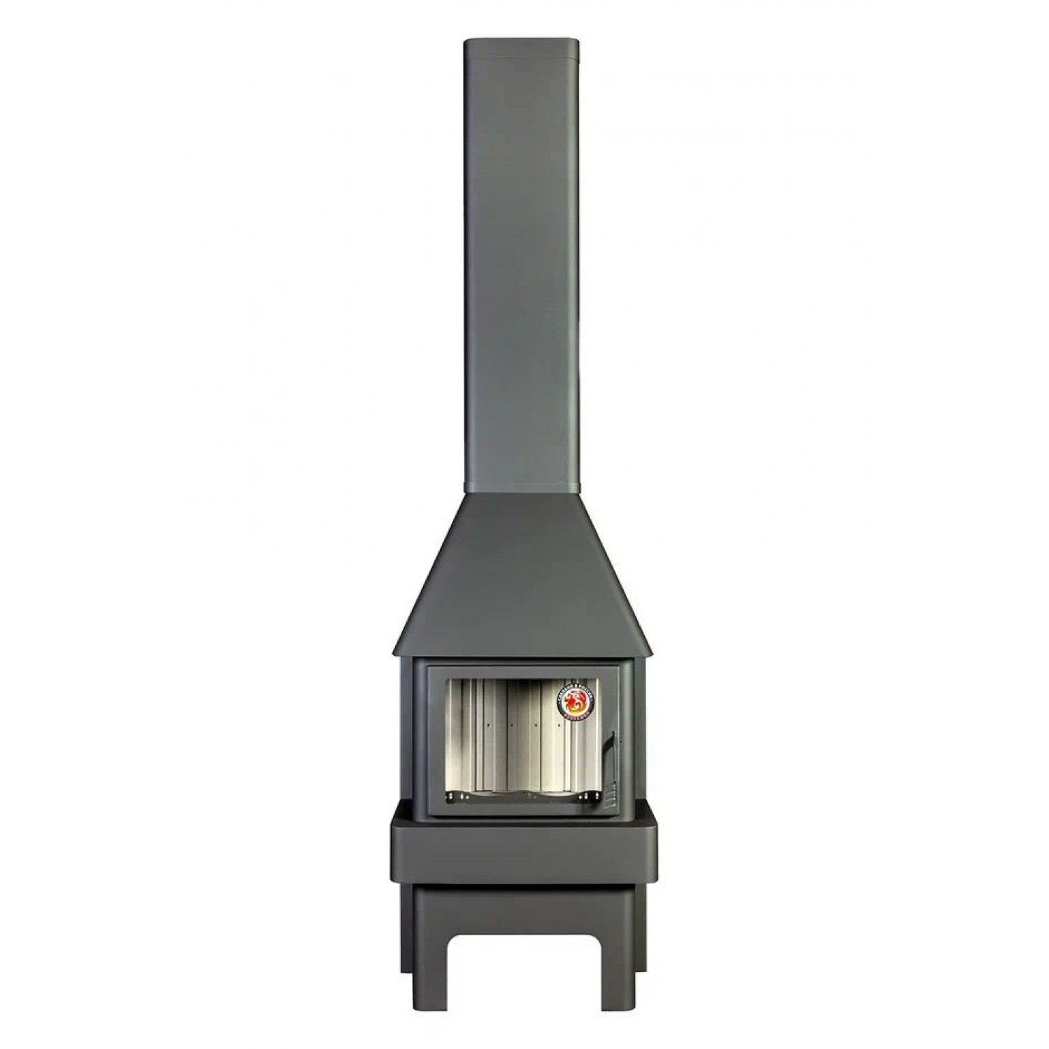 Бавария Три стекла чёрная можно назвать полноценным камином. Призматическая дверца позволяет наблюдать за огнём с разных точек комнаты. А металлический кожух скрывает дымоход, если он проходит внутри дома.