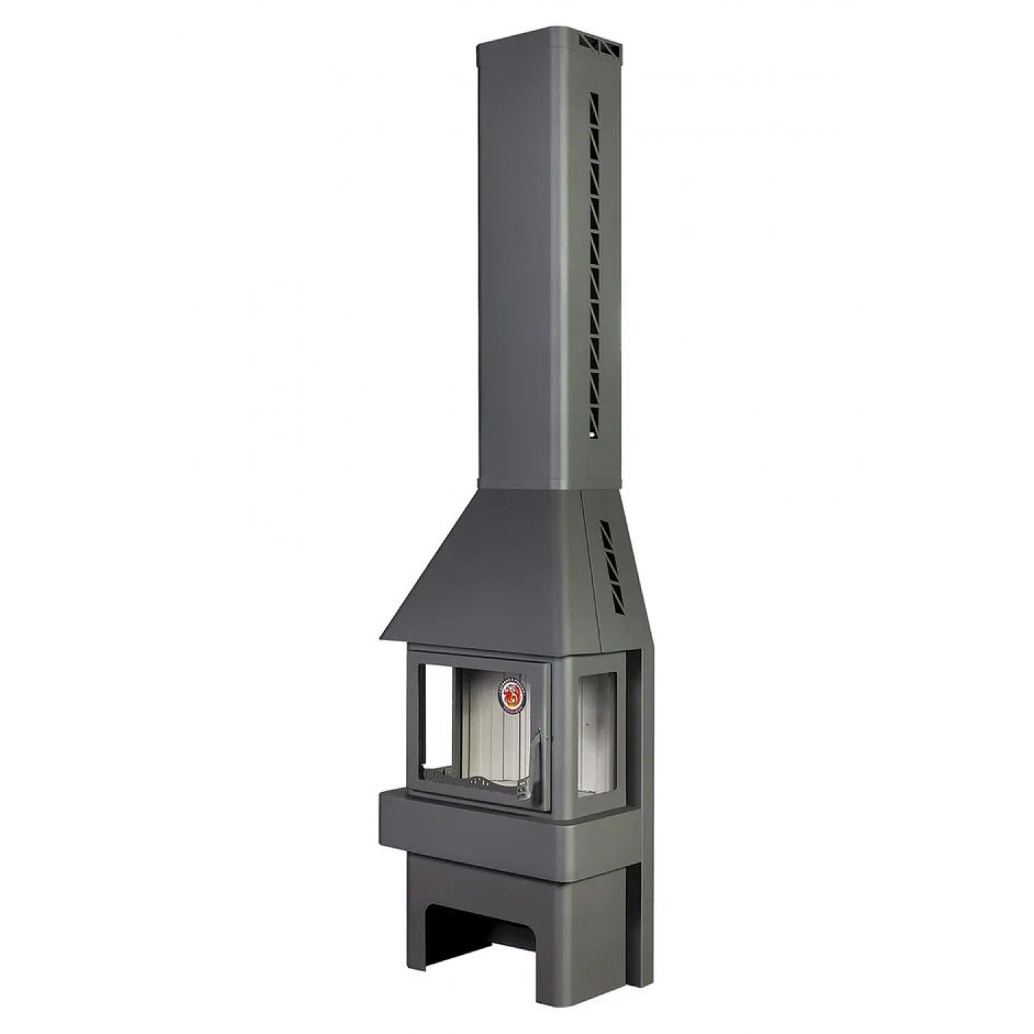 Печь-камин Бавария 3 стекла серая предназначена для обогрева помещения объемом до 240 куб. м.
