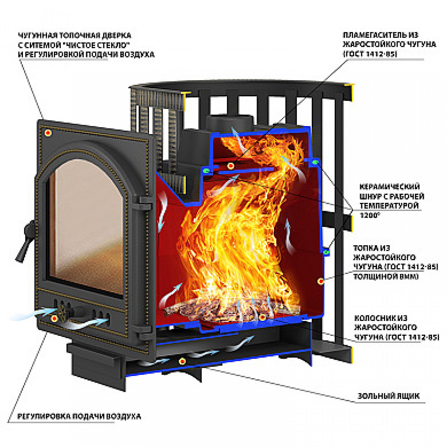 Благодаря выносному топливному каналу печь можно топить из предбанника, комнаты отдыха.