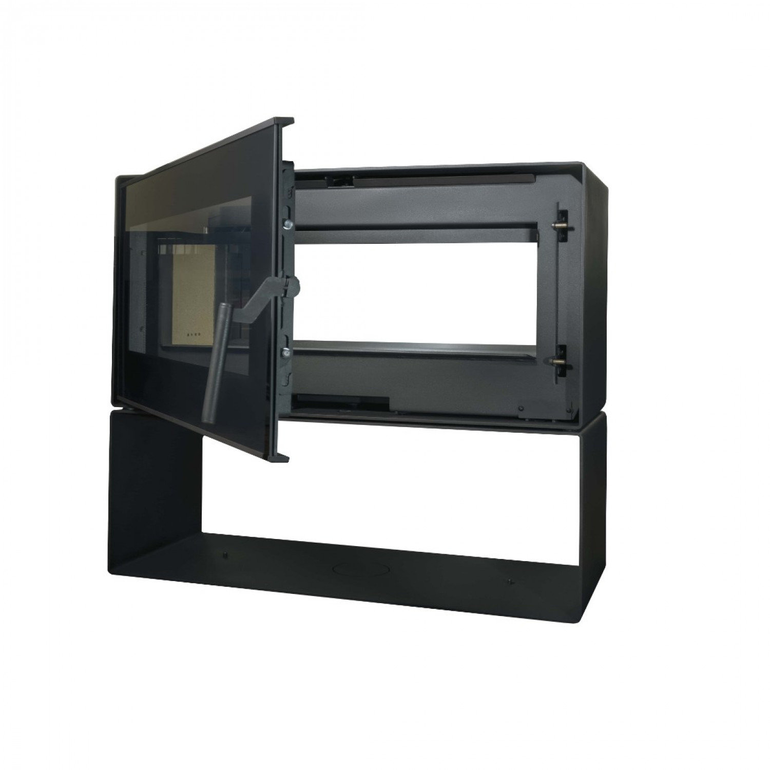 Дверца подвешена на усиленных петлях, она не деформируется и не перекосится со временем, да и случайно тоже не откроется - за безопасность отвечает магнитный замок. Изящная съемная ручка и черная принтованная рамка по периметру дополняют образ.