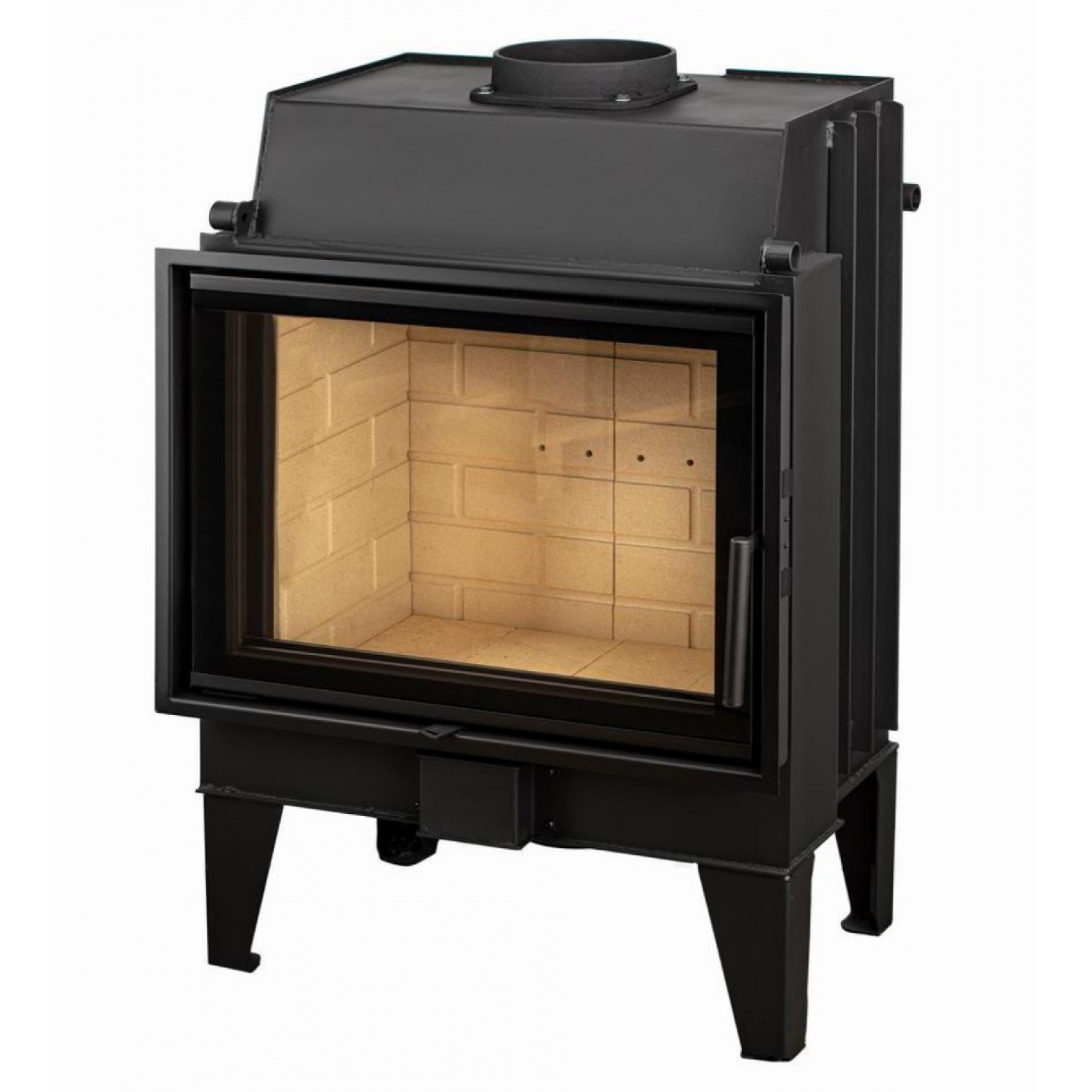 - В качестве опции вместе с топкой может быть поставлен конвекционный кожух. С помощью кожуха и воздуховодов можно развести теплый воздух в соседние помещения и отопить небольшой дом площадью до 150 м2.
